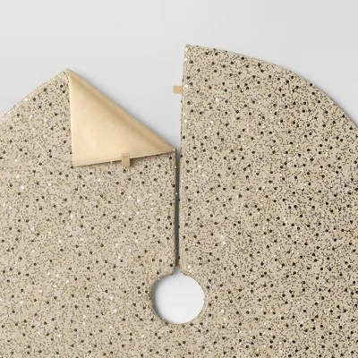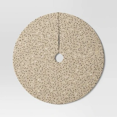 Add a touch of shimmer to your holiday decor with this Christmas Sequined and Beaded Tree Skirt from Wondershop™. Made of polyester, this beige Christmas tree skirt features shiny sequins and beads that beautifully frame your Christmas tree. Easy to secure with the hook-and-loop closure, this circular tree skirt provides a perfect base for presents and helps keep pine needles off the floor.