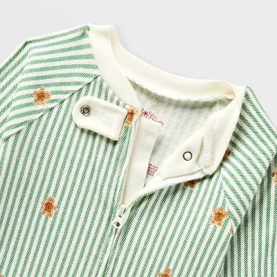 Enjoy the snug feel of this Baby Gingerbread Striped Ribbed Holiday Matching Family Footed Pajama – Wondershop™ in Cream. Made from a blend of durable midweight material, it’s soft enough for sleep and strong enough for little crawlers. Designed with long sleeves and a full-length zipper, it’s easy to get on and off without fuss. Crafted with a crew neck and fitted fit, it keeps your baby cozy and secure through naps and play. The classic plaid adds a festive touch for holiday family matching.